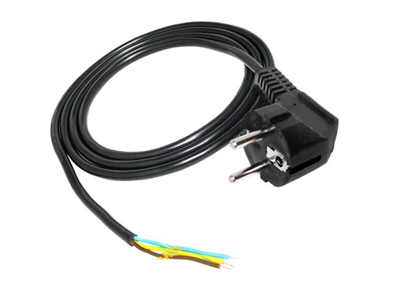 Питающий кабель с вилкой с заземляющим контактом. Тип кабеля: ПВС 2х1,0+1х1,0. Длина кабеля 2м. Цвет черный. Рассчитан на использование в сетях с напряжением 250В и током 16А.
