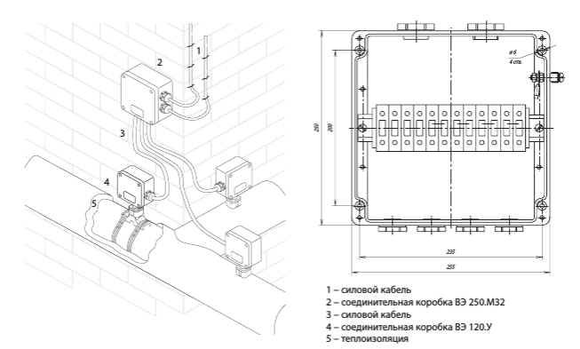 Коробка ВЭ 250.М32 предназначена для подключения силовых кабелей питания систем электрообогрева.