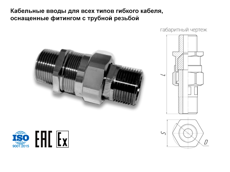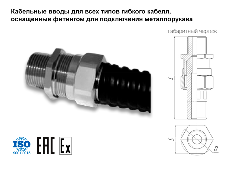 Вводы могут быть оснащены фитингом для крепления металлорукава, либо фитингом для присоединения трубы.Модульный принцип построения кабельного ввода позволяет легко присоединить трубу или металлорукав путем замены одной детали без замены кабельного ввода целиком.