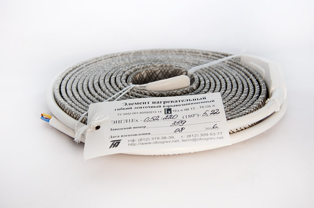 ЭНГЛ1Ех - это промышленного качества гибкая нагревательная лента, которая может использоваться для технологического подогрева или поддержания заданных температур до 180С, в том числе во взрывоопасных зонах.