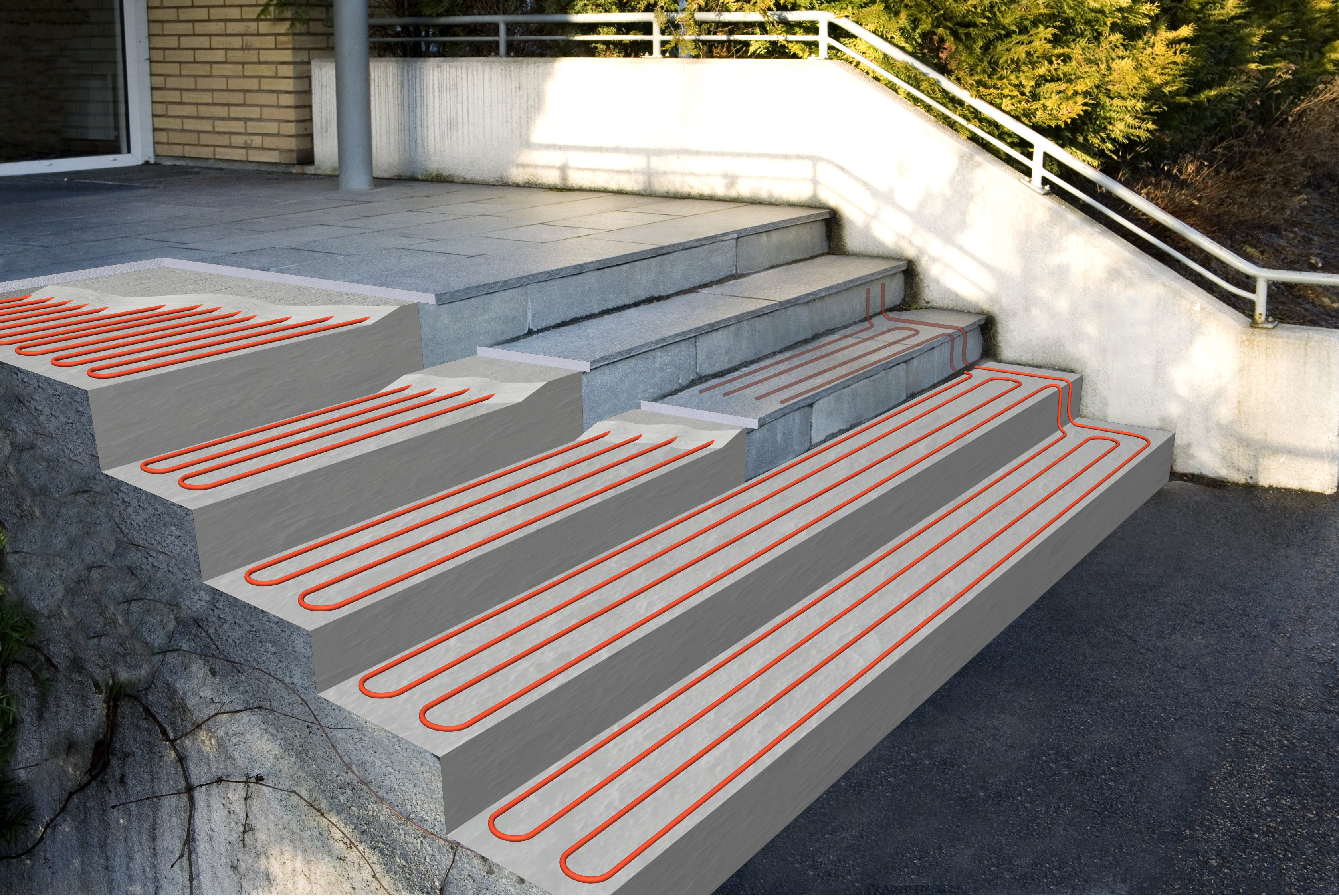 С помощью широкого ассортимента предлагаемых греющих кабелей, можно выполнить обогрев любых открытых площадей (ступеней, эстакад, автостоянок, дорожек, тротуаров и т.д.) и произвести укладку кабельной системы под любое покрытие – бетон, плитка, мрамор, асфальт и др.